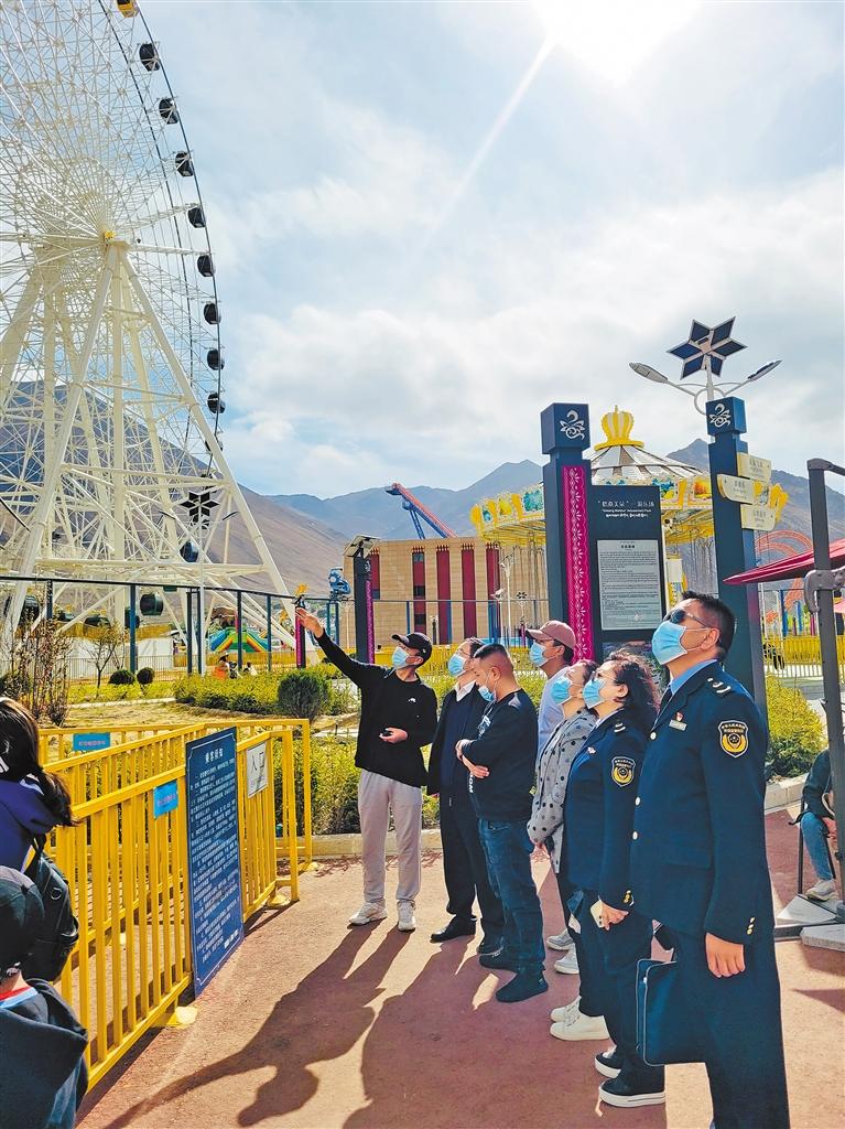 拉薩市市場監督管理局黨組書記次仁卓嘎表示,運營使用單位要指定專人負責疫情防控工作,嚴格落實場所碼制度,提醒入園人員佩戴口罩,定期對設備進行消殺;要全面履行安全主體責任,定期對游樂設施開展隱患排查,發現問題立即整改,確保設備不“帶病”運行;要按檢規對設備進行檢驗,不得使用超期設備,并確保操作人員持證上崗、規范操作設備;加大工作人員教育培訓力度,提高安全意識。