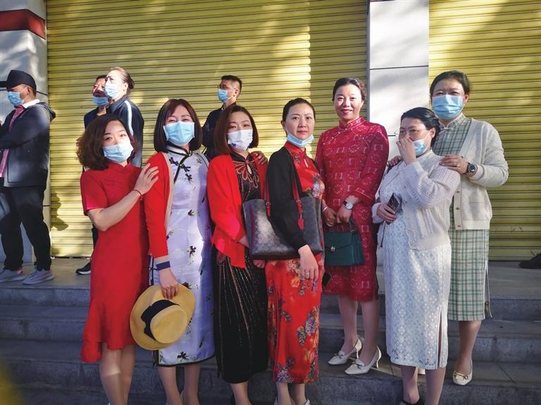 家長們組團(tuán)穿旗袍為孩子加油助威。 文/圖 記者 張雪芳