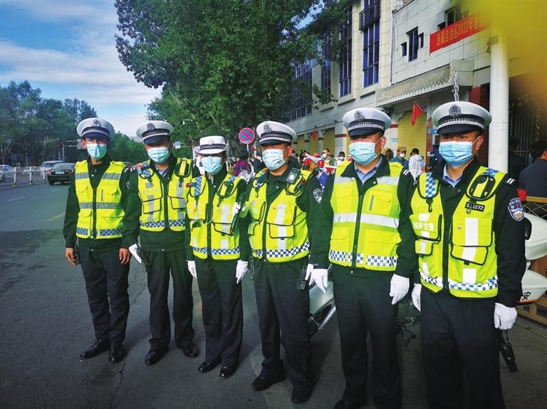 在拉薩中學考點,拉薩市公安局城關公安分局的民警們早早來到執勤點位,執勤民警協助學校做好出入口、測溫點、家長等候區、測溫隔離區等的秩序維護,加強疏導分流,用實際行動為考生營造良好考試環境。
