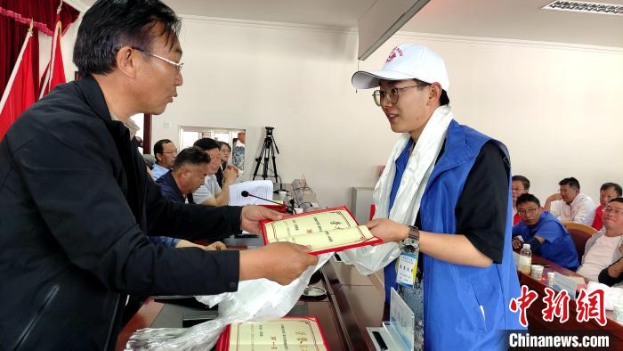 圖為為此次競(jìng)賽全能獎(jiǎng)獲得者陳建強(qiáng)頒發(fā)證書(shū)。 貢桑拉姆 攝