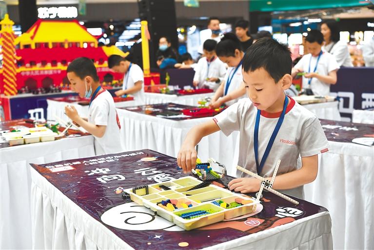 圖為孩子們在完成積木挑戰項目。記者 王敏 攝