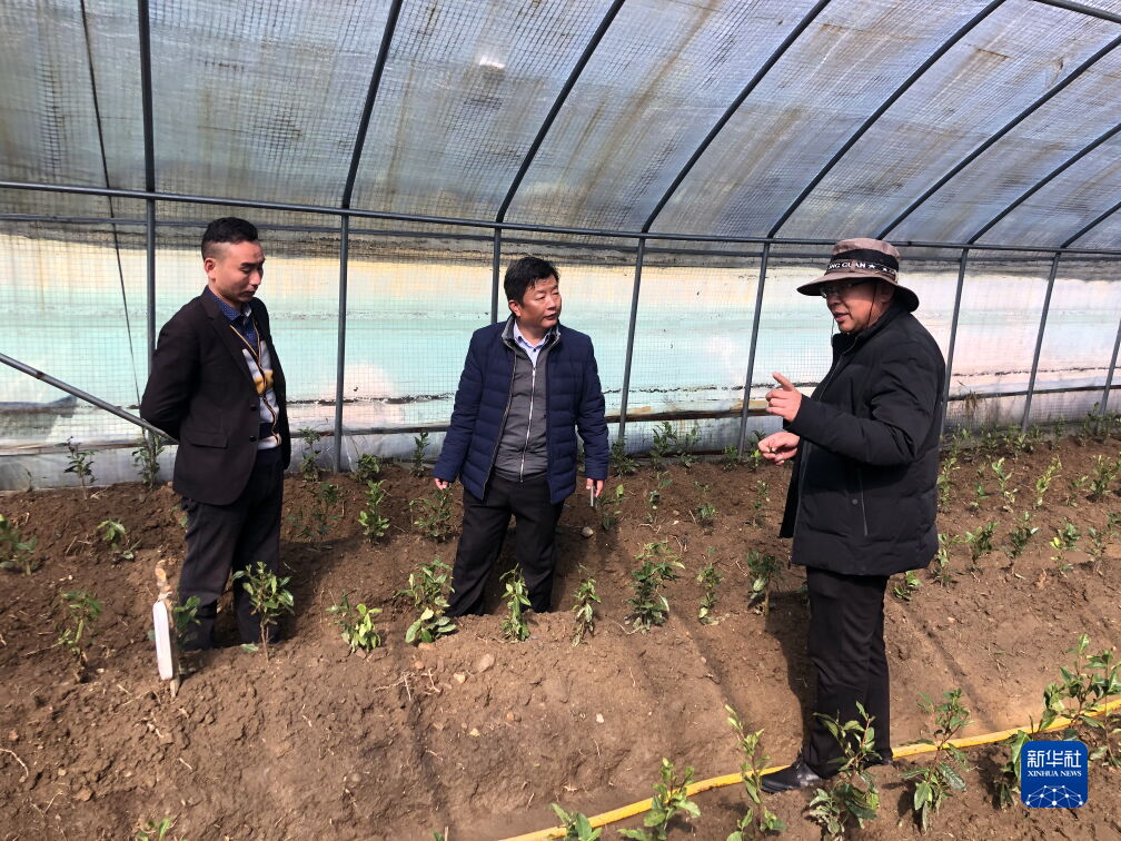 裴含龍(右二)在錯那縣勒布溝貢日鄉指導大棚茶葉栽培。(受訪者供圖)
