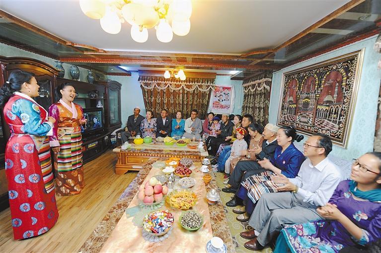 著力創(chuàng)建全國(guó)民族團(tuán)結(jié)進(jìn)步模范區(qū)。截至2022年5月,全區(qū)共有國(guó)務(wù)院、西藏自治區(qū)表彰的民族團(tuán)結(jié)進(jìn)步模范集體1934個(gè),模范個(gè)人2846人。圖為2021年2月13日,西藏自治區(qū)拉薩市吉崩崗社區(qū)各族群眾在同一天共度農(nóng)歷新年和藏歷新年。