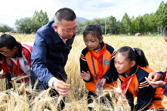 在西藏自治區(qū)日喀則市上海實驗學校,有一系列以青稞為主題的多彩課程:春耕、秋收季節(jié),孩子們走進田間地頭,親手播種、收割糧食,觀察農(nóng)耕機運作,感受現(xiàn)代農(nóng)村生產(chǎn)方式的變革;在教室里,班主任結(jié)合當?shù)厍囡a(chǎn)業(yè)的發(fā)展故事,講述脫貧攻堅和鄉(xiāng)村振興的歷程;今年7月,師生們還走進剛建成的青稞博物館,聆聽農(nóng)學家尼瑪扎西講授關(guān)于青稞的歷史文化知識。