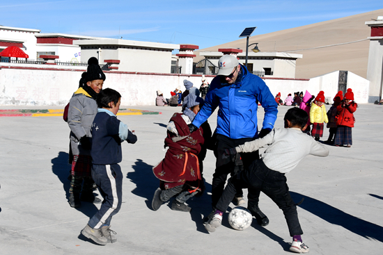 體育教師施剛強在課堂上注意到,藏族孩子比較害羞、靦腆,為了讓學生們活躍起來,他在課上安排了各種團體游戲和比賽,讓每個孩子都能在體育活動中發(fā)揮優(yōu)點、享受快樂。