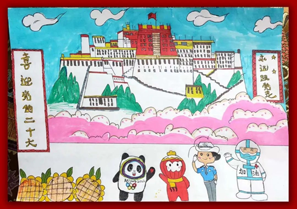 中國西藏網訊 為慶祝黨的二十大勝利召開,西藏自治區日喀則市委宣傳部、市文化局主辦的“共慶盛會 祝福祖國”日喀則市第三屆少兒才藝大賽舉行。圖為日喀則市第三屆少兒才藝大賽美術類獲獎作品。(中國西藏網 圖文來源:文化日喀則微信公眾號)