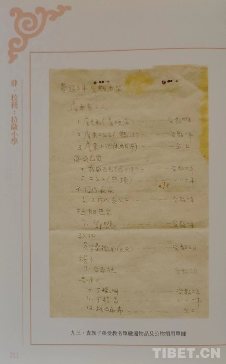 這期間,因?yàn)閷W(xué)校成績斐然,影響大增,不少貴族子弟也慕名前來就讀。拉薩小學(xué)專設(shè)一個(gè)特別班,招收貴族、富商的孩子,他們的教學(xué)是漢藏文一起上。在這個(gè)班里先后就讀的貴族子弟不少。如詹東家族的三兄妹,即詹東色、詹東·慈汪、詹東·扎西曲準(zhǔn)。詹東色有個(gè)漢語名字,叫詹逢春(又稱詹植棠。他是個(gè)對(duì)中華文化非常喜愛的貴族子弟,會(huì)一口流利的四川話,還跟阿旺堪布的一位漢族徒弟學(xué)會(huì)了唱京戲。他曾在蒙藏委員會(huì)委員長吳忠信進(jìn)藏主持達(dá)賴?yán)镒驳涠Y時(shí),全力給予了幫助。此外,在拉薩小學(xué)上學(xué)的還有瑪朗巴”家族、“稽卜”家族的子弟。十四世達(dá)賴的二哥嘉樂頓珠也曾在這里學(xué)習(xí)過。其他還有邊覺、唐麥、夏扎、雪貴巴等的子女。