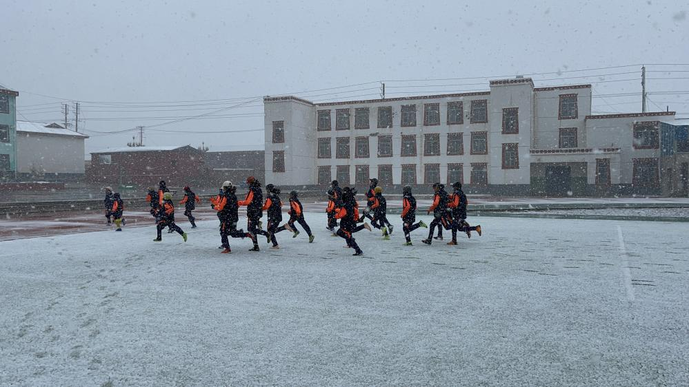 運球、顛球、體能訓練……回到家鄉后,一有時間,多果和小伙伴們堅持練球。惡劣的環境并未減少他們的信心和決心,練習時常有不少隊員因鏟球等動作滑倒在地,他們笑著拍拍身上的泥土和冰雪,繼續練習。