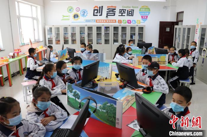 在天祝縣天師附小智慧教室內(nèi),農(nóng)牧區(qū)的孩童“觸網(wǎng)”感知外面的世界。 天祝縣委宣傳部供圖