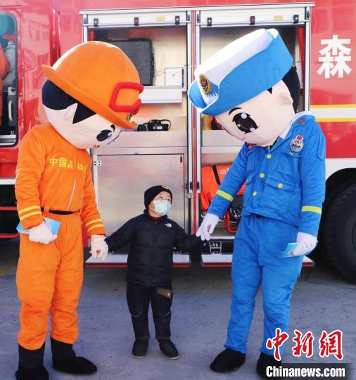 森林消防隊員組織小朋友體驗消防車。 林芝市森林消防供圖