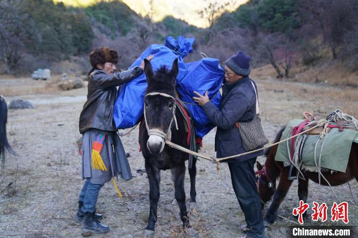 正值寒冬,丹增培楚牽著騾馬隊從香格里拉高原牧場的群山之間緩緩走來,馬幫的銅鈴發(fā)出叮叮當(dāng)當(dāng)?shù)臉氛隆?/p>