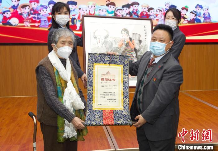 圖為活動(dòng)當(dāng)天知名畫家吳茜向中國藏學(xué)研究中心西藏文化博物館捐贈(zèng)西藏主題作品。 中國藏學(xué)研究中心供圖
