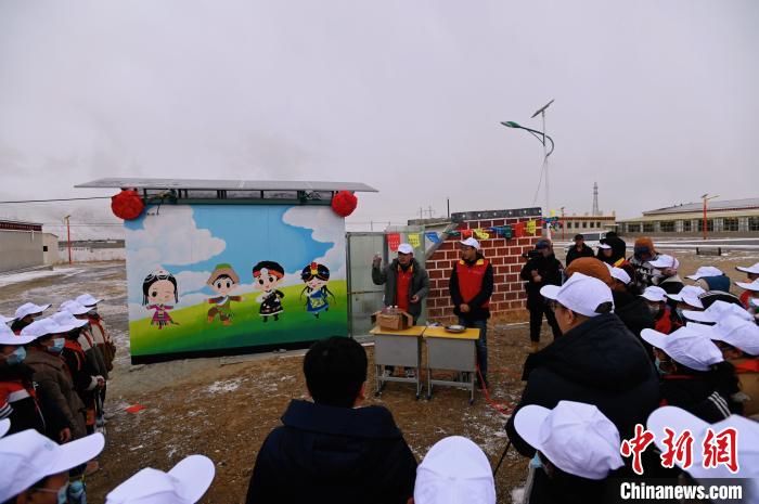 這份“禮物”約有半個標準集裝箱那么大,它的屋頂裝有幾塊太陽能光伏板,這間鐵皮小屋從杭州出發,途徑安徽、河南、陜西、甘肅、青海,跋涉近4000公里來到那曲,為學校師生帶來了干凈的飲用水。