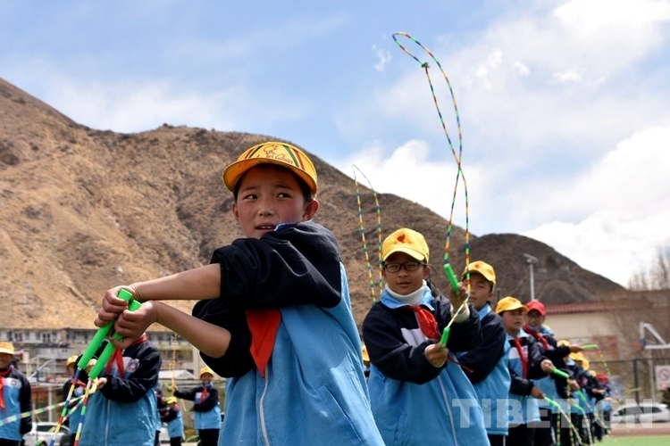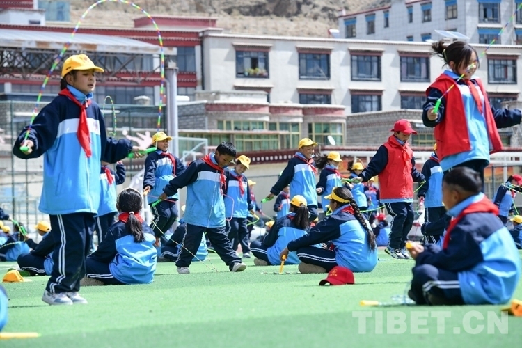 圖為活動(dòng)現(xiàn)場學(xué)生在學(xué)跳繩 攝影:次旦拉姆