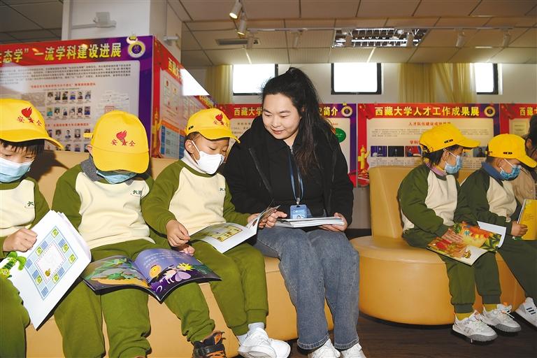 圖為西藏大學圖書館的老師與孩子們在一起閱讀繪本。記者 李洲 攝
