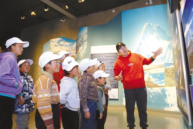 圖為博物館工作人員給小朋友們科普知識。記者 格桑倫珠 攝