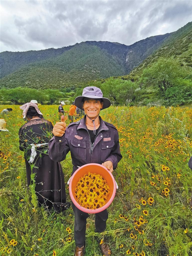 圖為巴宜區人社局聯合林芝林卡旅游開發有限公司開展“以工代訓”,組織農牧民群眾在布久鄉工布原鄉景區采收雪菊。通訊員 楊健 記者 謝筱純 王珊 攝