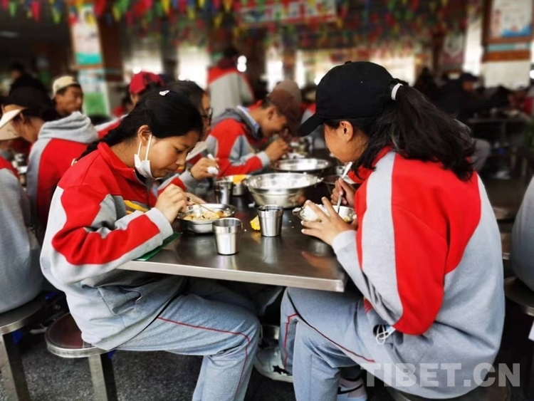 孩子住在學校,家長最不擔心的就是飲食問題,在“三包”政策下,學校食堂免費日常供應肉蛋奶、蔬菜、水果,營養配餐不僅讓學生吃得飽,而且吃得有營養。同時,學校每天還提供糌粑、酥油茶、清茶等西藏傳統食品。