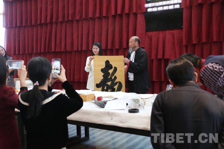 中國(guó)西藏網(wǎng)訊 “我想求幅字”“老師剛給我寫(xiě)的‘寧?kù)o致遠(yuǎn)’我要掛在辦公室,常常欣賞”“篆書(shū)書(shū)法也太有意思,真是長(zhǎng)知識(shí)了”……5月16日,西藏榜書(shū)家協(xié)會(huì)的書(shū)法家們受邀走進(jìn)西藏文化旅游創(chuàng)意園區(qū)創(chuàng)業(yè)創(chuàng)新基地(以下簡(jiǎn)稱(chēng):雙創(chuàng)基地),為這里的入駐企業(yè)主們獻(xiàn)書(shū)藝墨寶,和他們交流探討中華傳統(tǒng)文化。
