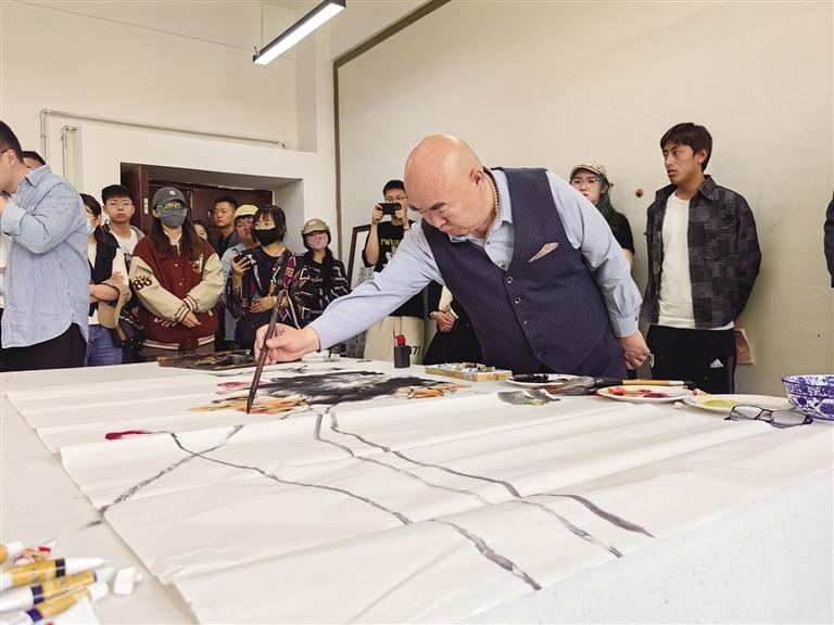6月5日,由國家藝術(shù)基金支持,北京畫友藝術(shù)交流中心主辦的《意境》唐詩主題畫展在西藏大學(xué)藝術(shù)學(xué)院成功舉辦。此次主題畫展有賈平西、劉曦林、張松等20余位藝術(shù)家作品參展。中國藝術(shù)研究院文學(xué)藝術(shù)院專職畫家、國家一級美術(shù)師林維與南開大學(xué)藝術(shù)與美學(xué)研究院副院長、博士生導(dǎo)師尹滄海現(xiàn)場揮毫潑墨、即興發(fā)揮,給西藏大學(xué)獻(xiàn)上了兩幅圖。