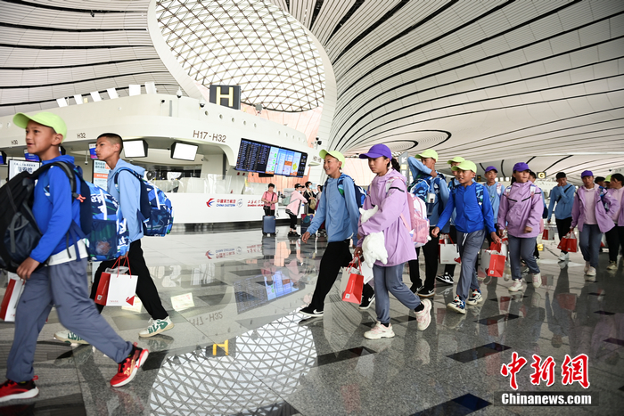 6月4日清晨,“青海玉樹藏族青少年北京行”活動的40名藏族孩子踏上歸程。中新社記者 田雨昊 攝