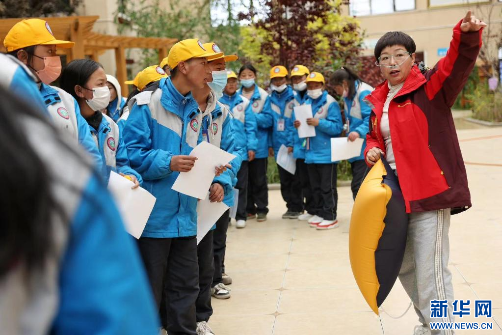 ??在西藏自治區那曲市色尼區第二中學(杭嘉中學),志愿者陳春玉正在引導學生排隊驗光(6月22日攝)。新華社發(趙穎碩 攝)