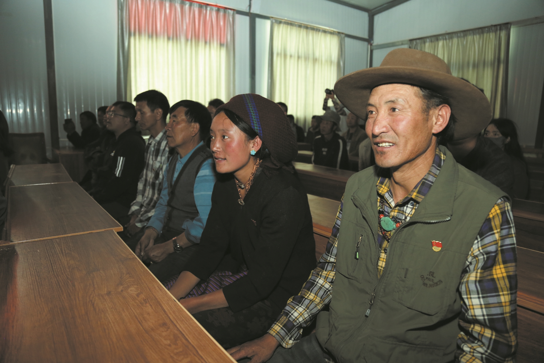 圖為村民在室內觀看電影《西藏天空》。 拉薩融媒記者 次仁卓嘎攝