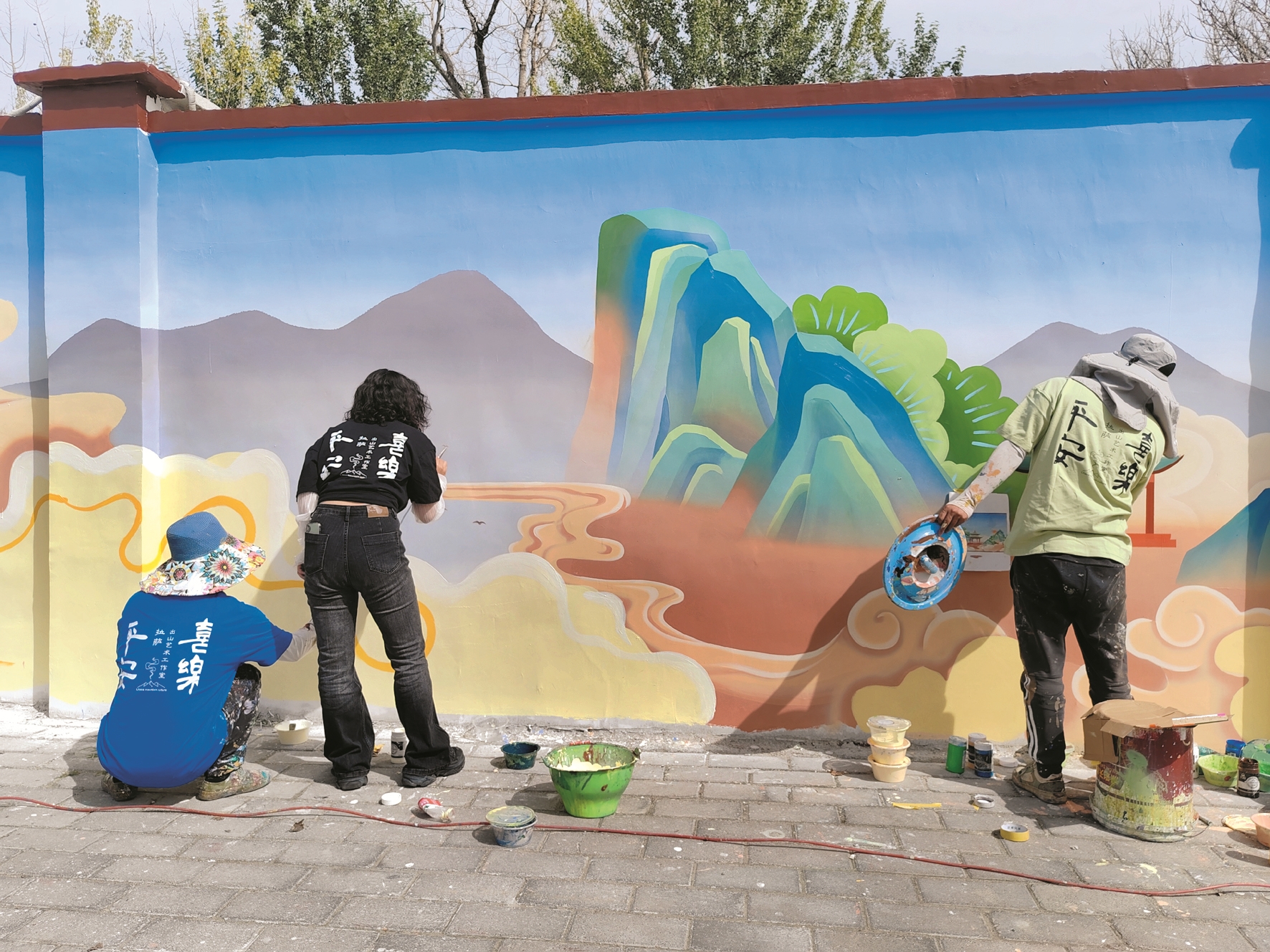 同時,他們還將在一些好地段、人流量大的地方,畫一幅專屬于拉薩的“拉薩”兩個字的形象LOGO,涵蓋拉薩文化、歷史、著名的景點等,打造一個地標性的打卡文字圖畫。這些墻繪在展現(xiàn)藏文化的同時還起到了美化城市的作用,提升了城市的市容市貌。