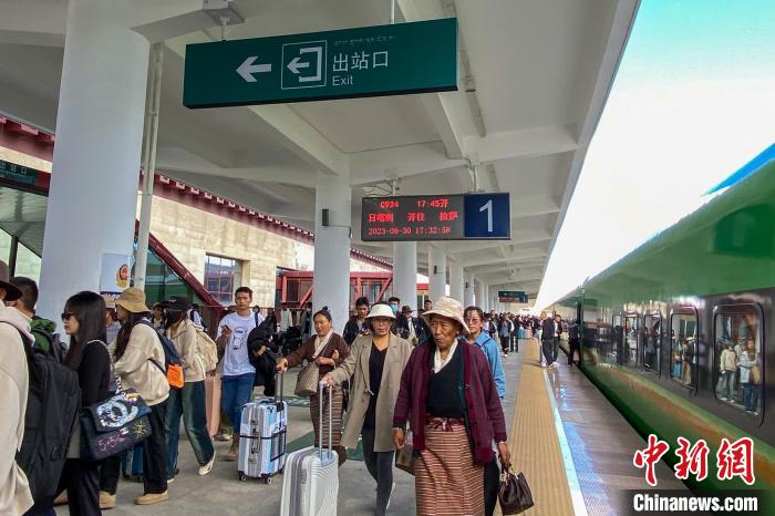 圖為暑運(yùn)期間,旅客在日喀則火車站搭乘高原復(fù)興號(hào)動(dòng)車組出行。日喀則火車站 供圖