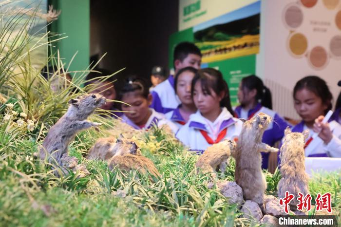 圖為青海省西寧市大通縣的青少年了解藏羚羊、雪豹等高原生物知識。張添福 攝