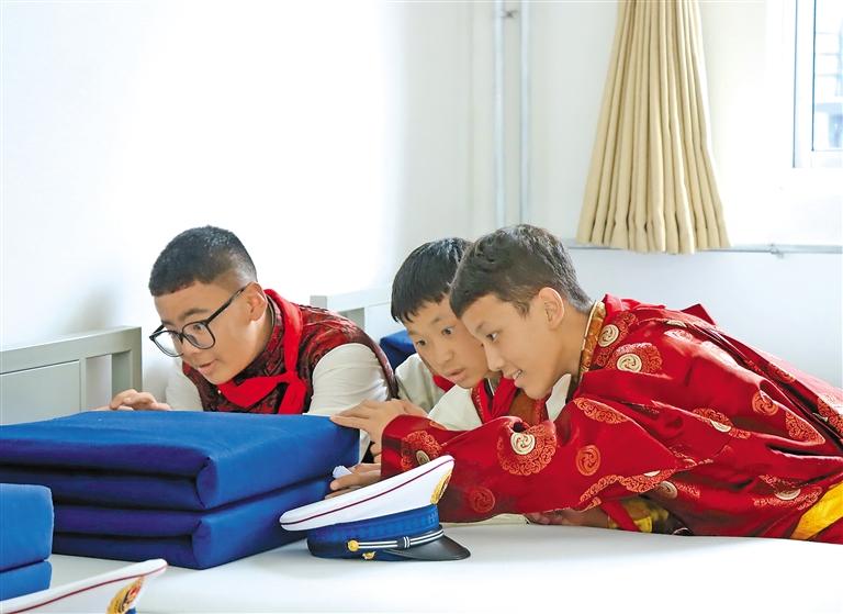 學生觀摩內務被。記者 胡文 通訊員 西繞拉翁 袁勇彬 攝