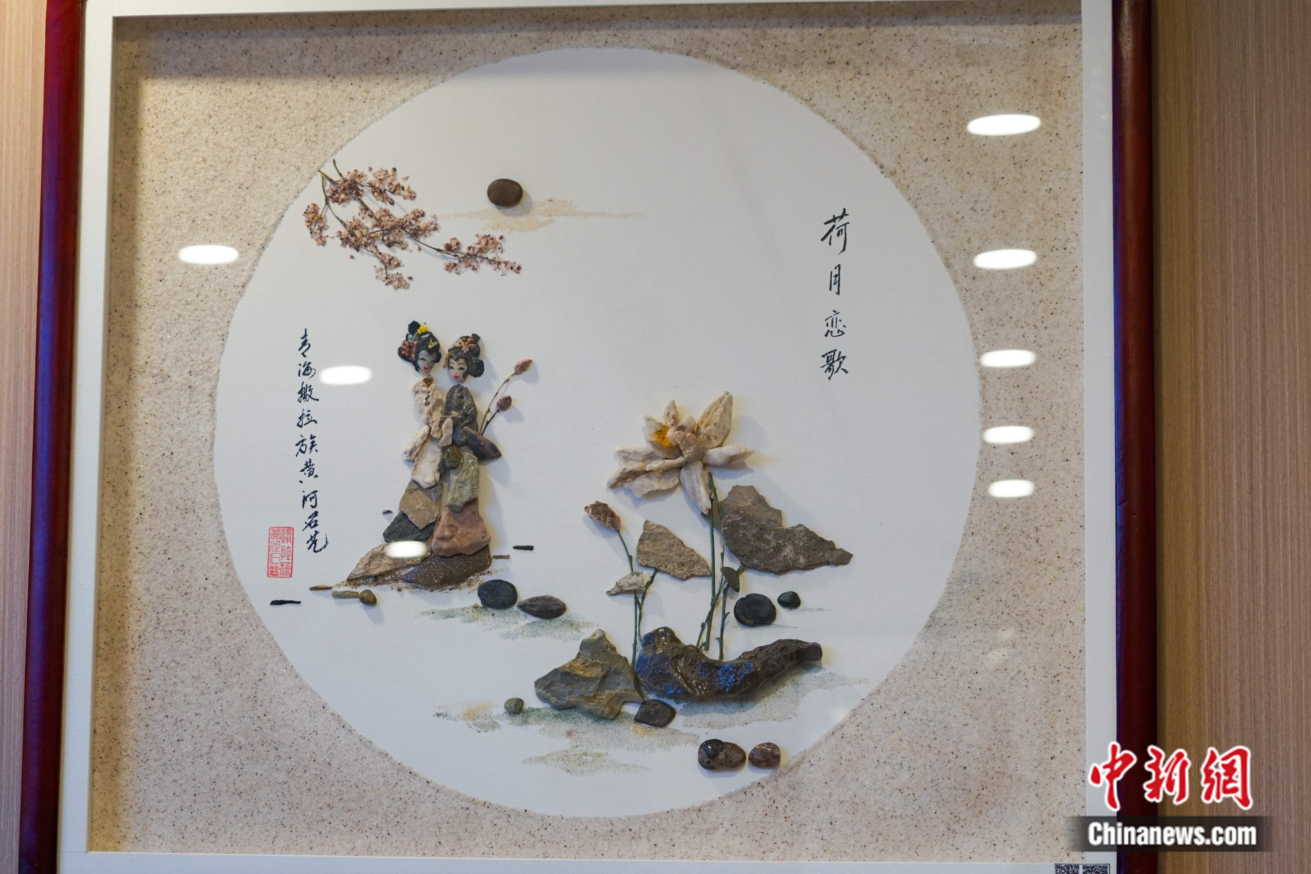 圖為中心內懸掛的撒拉族黃河石藝畫。馬銘言攝