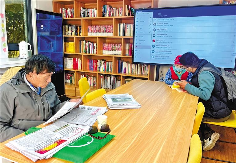 走進蓮花書屋,一樓的書架和閱讀區幾乎坐滿了專心閱讀的大人小孩。“我喜歡來公園散步,這里環境很美。前天過來散步時,看到我期待已久的書屋終于可以進去看書了。家里的書都被我看完了,所以我這兩天一寫完作業就要來這里看新的書。”五年級的德央措姆在少兒閱讀區翻看書籍,她為能夠擁有這樣的讀書環境而感到很高興。