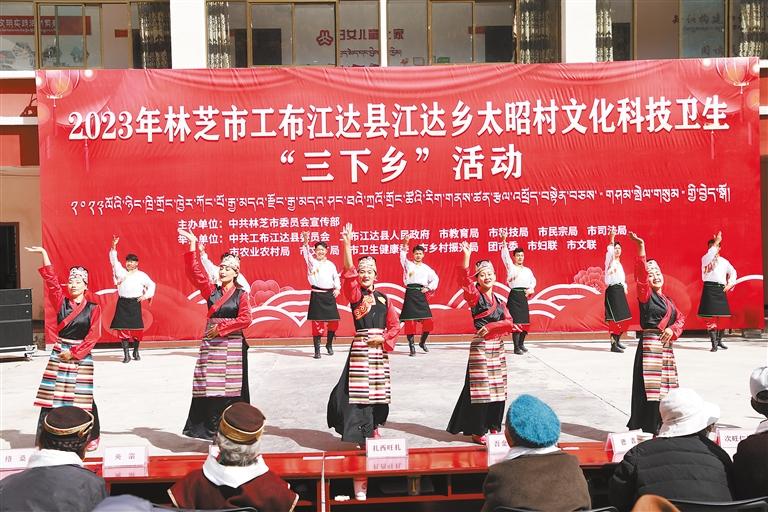 近日,由林芝市委宣傳部牽頭在工布江達(dá)縣江達(dá)鄉(xiāng)太昭村聯(lián)合舉辦林芝市文化科技衛(wèi)生“三下鄉(xiāng)”活動(dòng)。林芝市、工布江達(dá)縣兩級(jí)文藝工作者為現(xiàn)場群眾送上的《續(xù)寫盛世》《栢榭》等精彩節(jié)目和哈呼曲藝社帶來的語言類節(jié)目《學(xué)習(xí)國家通用語言文字》,深受群眾喜愛,節(jié)目中還穿插黨的二十大精神等相關(guān)知識(shí)問答環(huán)節(jié),在場群眾積極參與,踴躍回答,現(xiàn)場氣氛十分活躍。