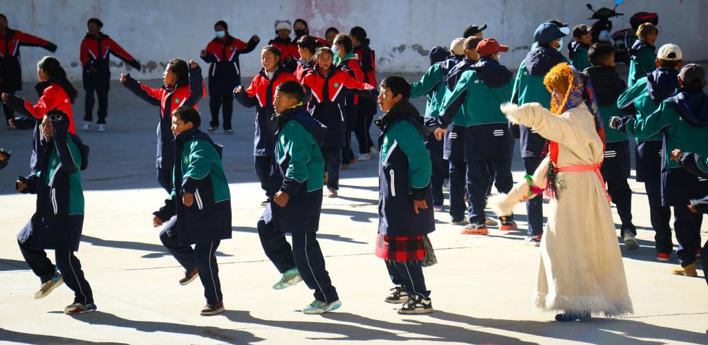 西藏阿里措勤縣中學的學生們正在跳“磁石彈舞”(11月13日攝)新華社記者 聶毅 攝