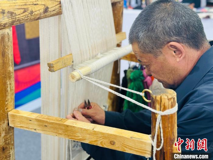 圖為國家鄉村工匠名師現場編織藏毯。中新網記者 孫睿 攝