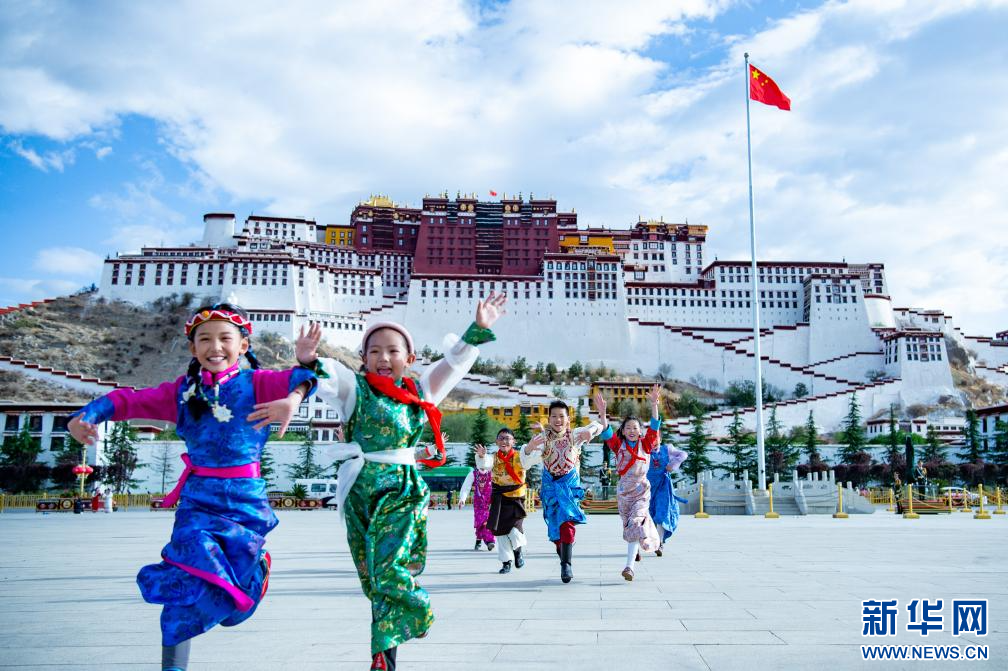 6月1日,小朋友們在布達拉宮廣場歡慶“六一”國際兒童節。新華網 旦增努布 攝