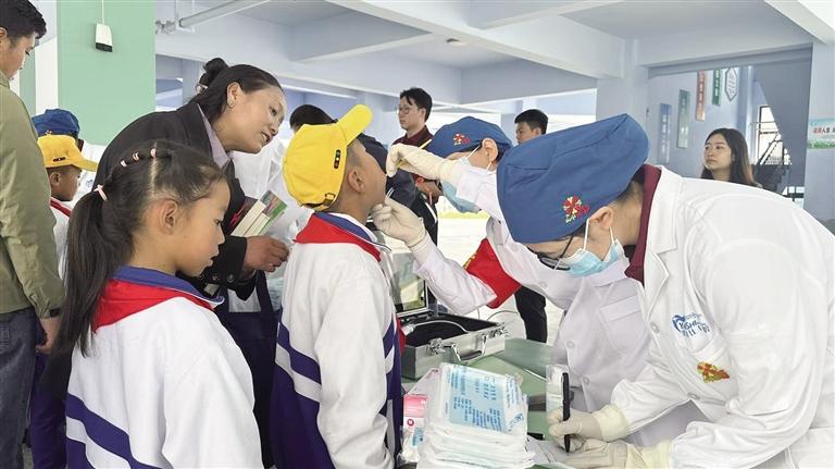 醫生為孩子們檢查牙齒。文/圖 記者 婁夢琳