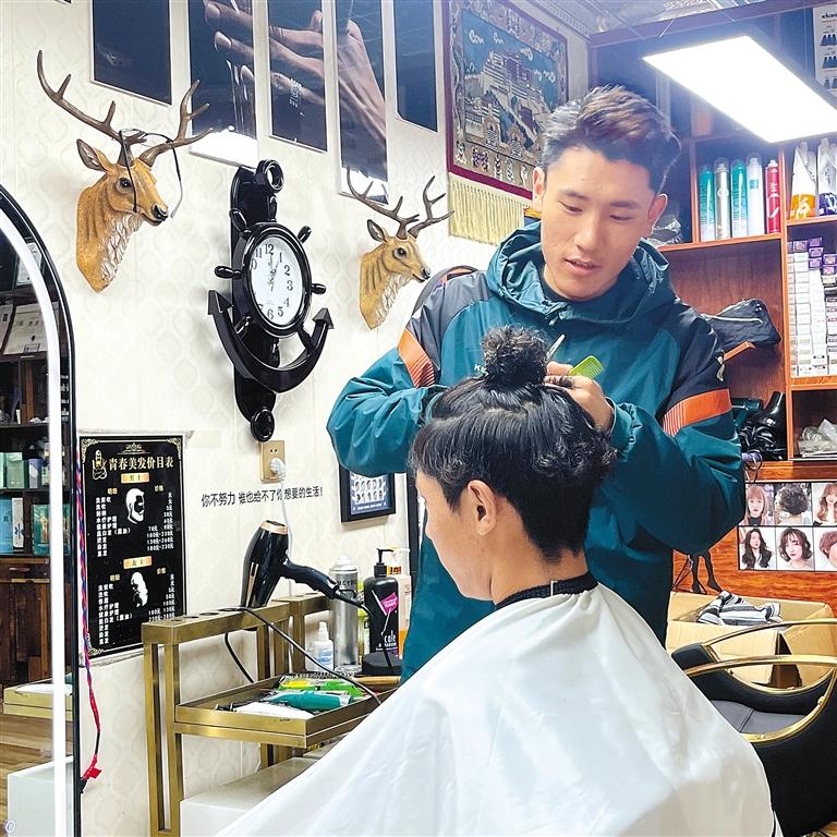 “這些年,隨著家鄉(xiāng)越來越繁榮,群眾生活水平不斷提高,大家也更加注重形象,對‘美’有了更高的追求。”經(jīng)過自己的觀察思考和對家鄉(xiāng)的深入了解,巴桑加措覺得家鄉(xiāng)的理發(fā)行業(yè)還是一片“藍(lán)海”,前景非常好。