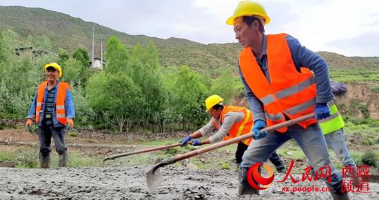 正在緊張施工的拉玉鄉甭唐公路鋪路現場 柴濟東攝