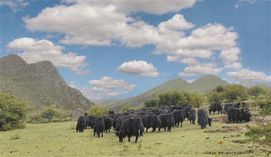 向巴饒丁一家生活發生巨變,離不開類烏齊縣大力發展牦牛產業。類烏齊縣平均海拔4500米,東有高山峽谷,西為草原牧場,植被豐富,為牦牛生長提供了絕佳的生態環境。