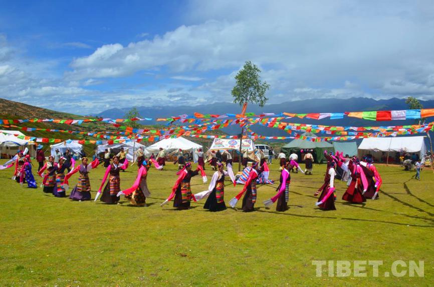 多數藏族群眾在豐收之后會來場歌舞慶祝一番。我想來想去想不出草地貢村在這樣的夏天能豐收什么。青稞幾乎沒有,核桃正長果實,牛羊一如既往地吃著草。