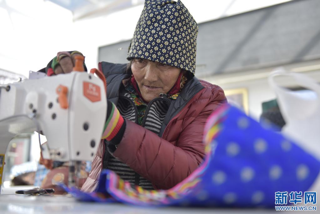 在民族服裝縫紉制造農民專業合作社里,拉卓正在縫制產品(2021年2月2日攝)。 新華社記者田金文 攝