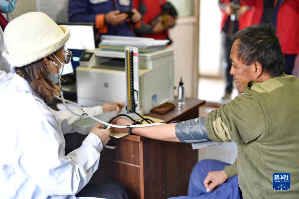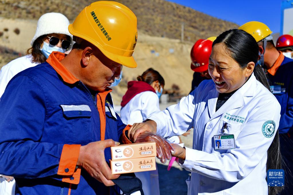 當(dāng)日,西藏康城腫瘤醫(yī)院的醫(yī)護人員來到拉薩市墨竹工卡縣,為工地工人義診,為他們送去冬天里的溫暖。