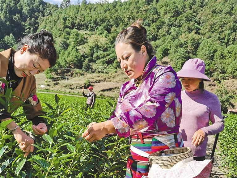 察隅縣下察隅鎮沙瑪村村民正在采茶。謝筱純 王珊 張猛 通訊員 滕云 攝