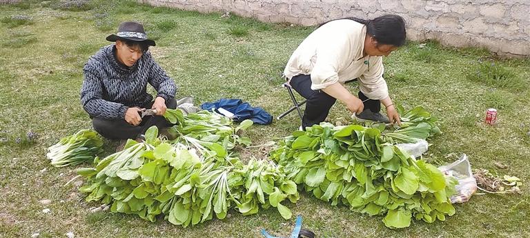圖為龍仁鄉龍仁村蔬菜種植戶在打理剛采摘的蔬菜。記者 格桑倫珠 裴聰 攝