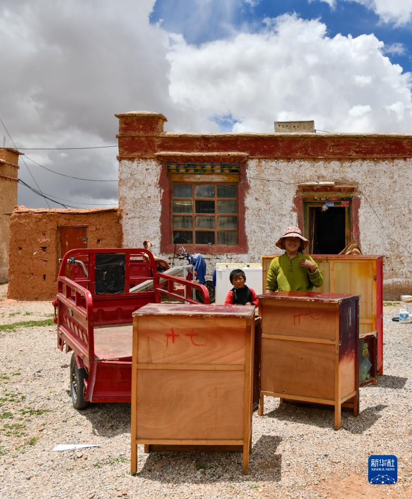 雙湖縣多瑪鄉果根擦曲村村民在搬運家具,準備搬遷(7月12日攝)。新華社記者 晉美多吉 攝