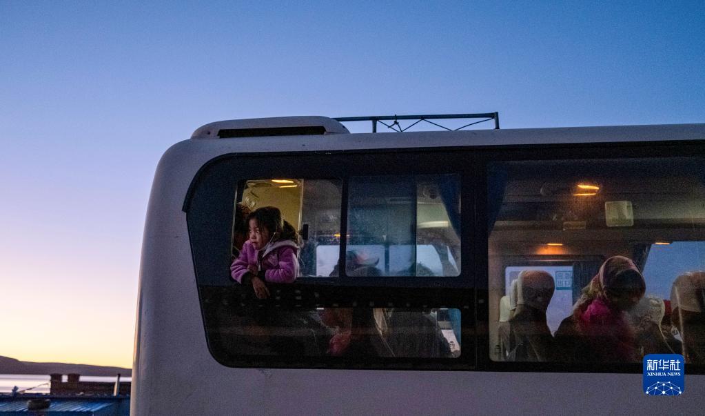7月19日,西藏自治區開始實施全國海拔最高縣雙湖縣第二批高海拔牧民生態搬遷。客車載著牧民駛離西藏那曲市雙湖縣多瑪鄉,前往位于山南市貢嘎縣的森布日安置點。