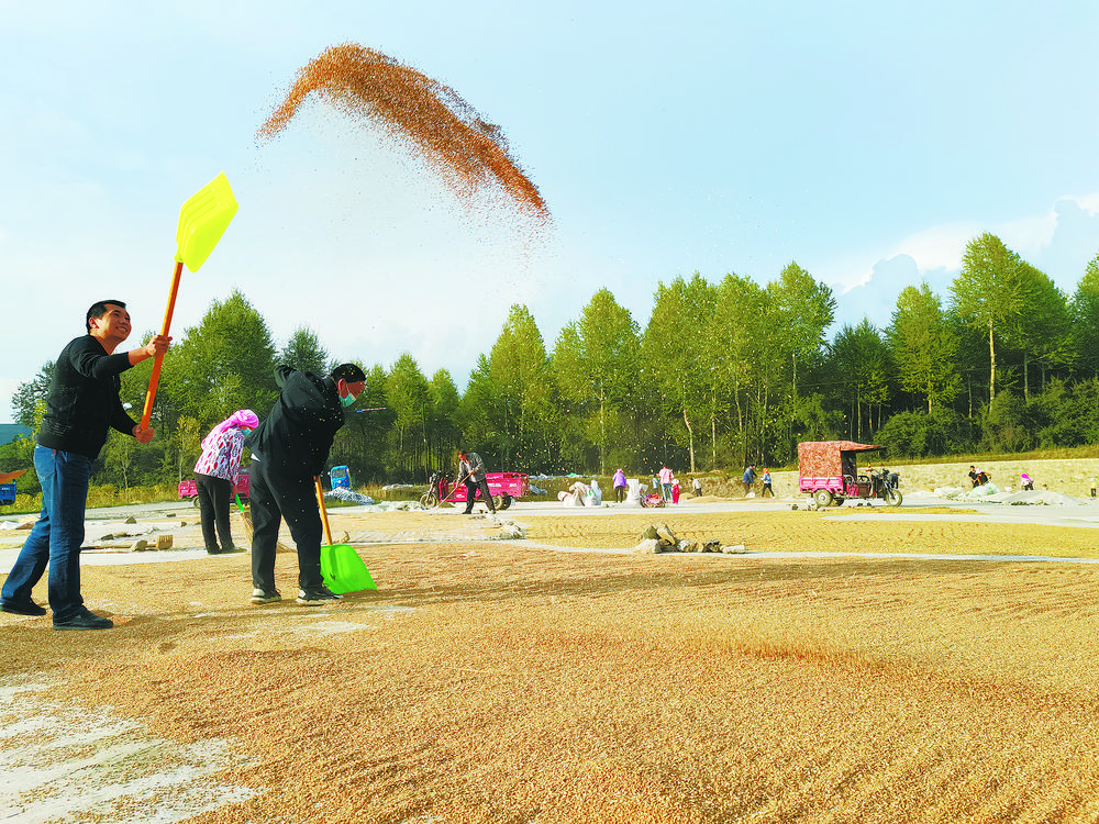 金秋時節,海東市互助土族自治縣丹麻鎮哇麻村一片豐收景象。隨著農作物陸續成熟,田地換上了“金裝”,農戶搶抓晴好天氣收割、晾曬小麥和油菜籽,人們用勞動成就幸福生活,用豐收喜迎黨的二十大勝利召開。