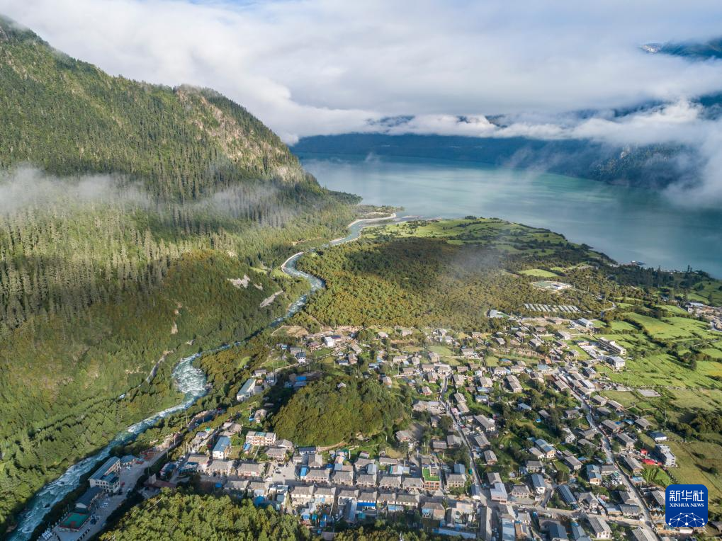 這是7月20日拍攝的西藏林芝市工布江達縣錯高鄉結巴村景色(無人機照片)。新華社記者 孫非 攝